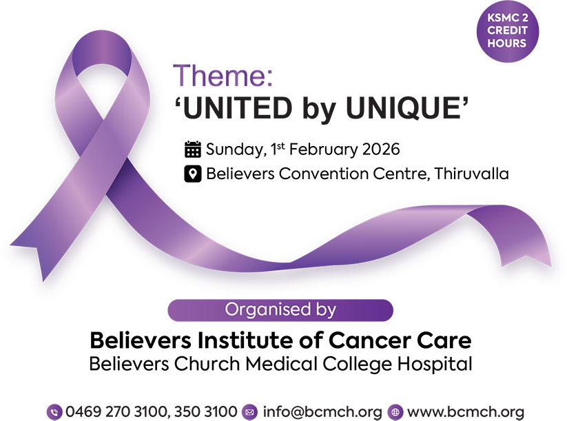 It is a great pleasure for us at ‘Believers Institute of Cancer Care’ to invite you to be part of the ONCOLOGY CME to be held at our Convention Centre in Thiruvalla on Sunday,1st February 2026. This will be a unique forum for physicians and surgeons to review and discuss advances in treatment of various malignancy.